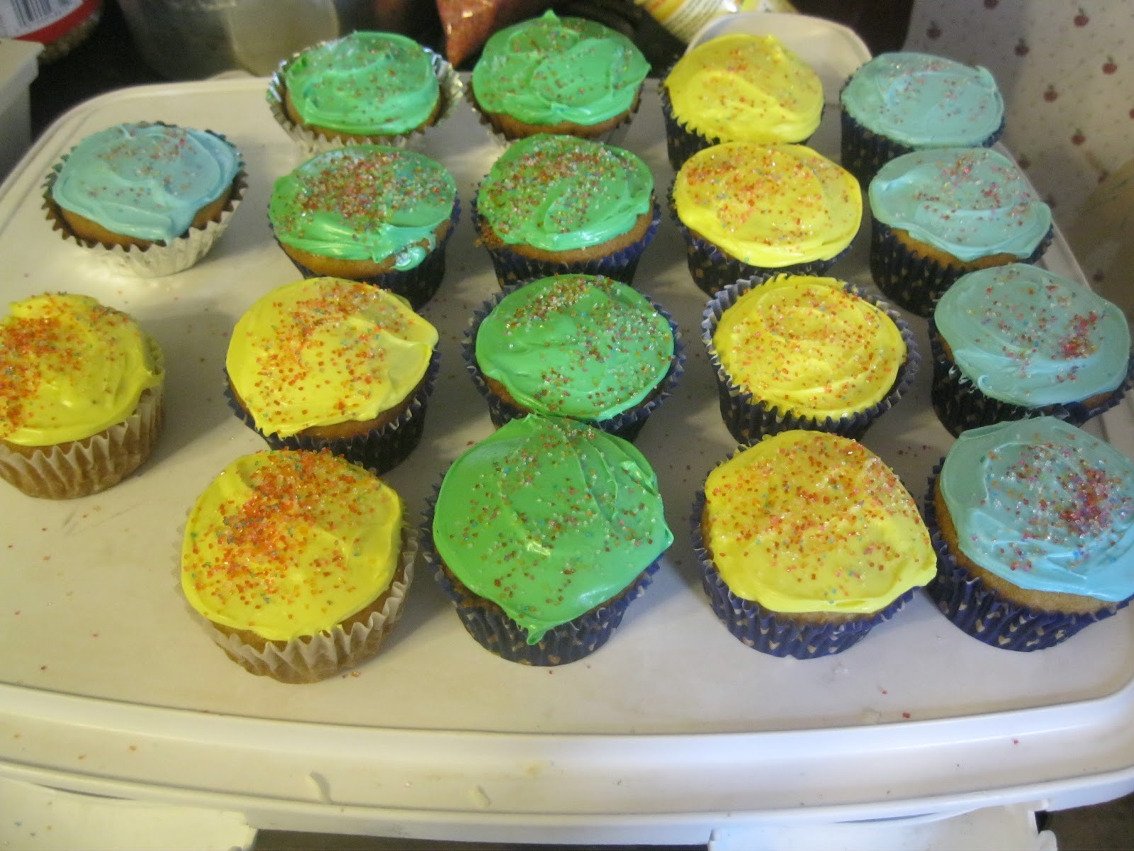 Vanilla Gluten Free Cupcakes make sure to check out the recipe! For information on the food colorings go here. I added the food coloring to gluten free icing and mixed well.