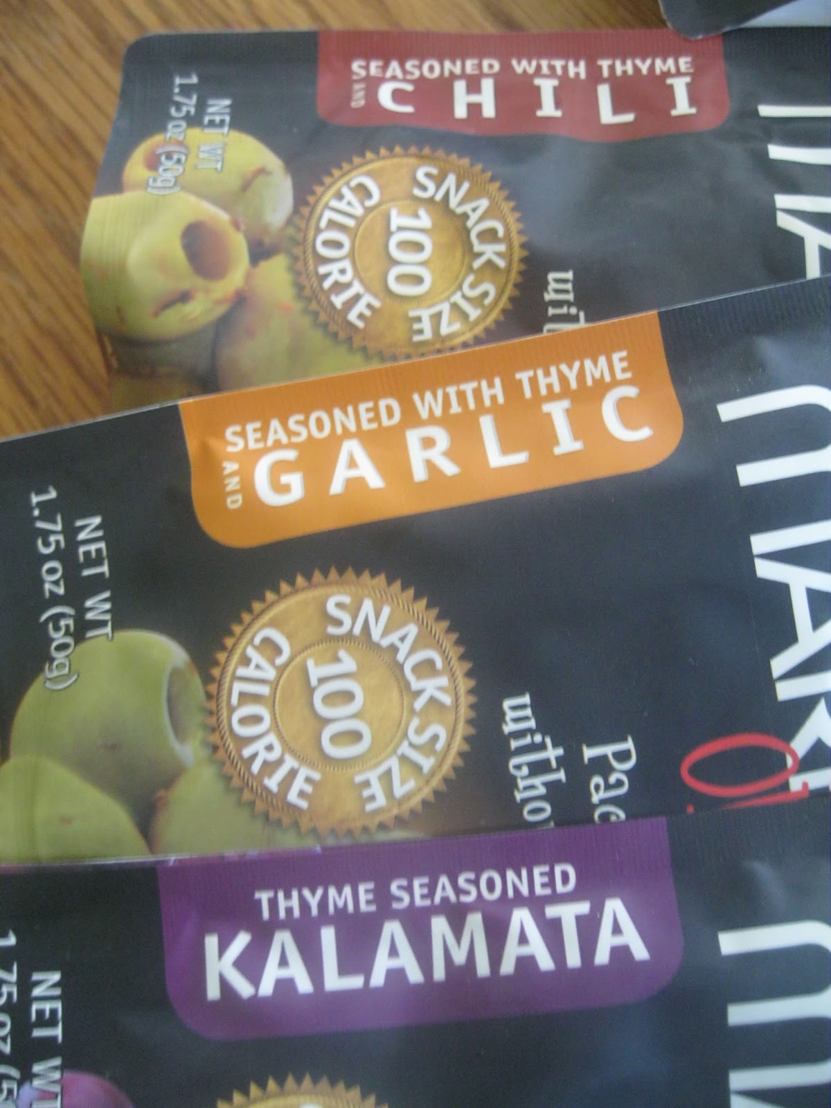 We received three packages of each of the three flavors; kalamata, garlic, and chili. Garlic was my favorite, though the other two were good too. My kids tried them as well but weren’t too thrilled. I think they got daddies taste for olives. I love them though.