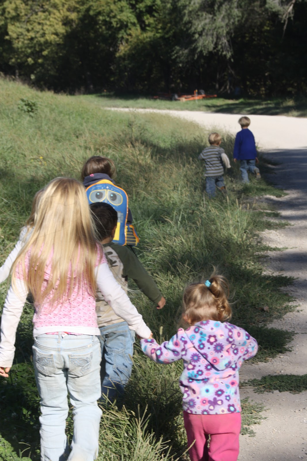 And we’re off. Bridgett carried the backpack. Fionna got to ride in the carrier on my back and Audry volunteered to hold Zyera’s hand! |