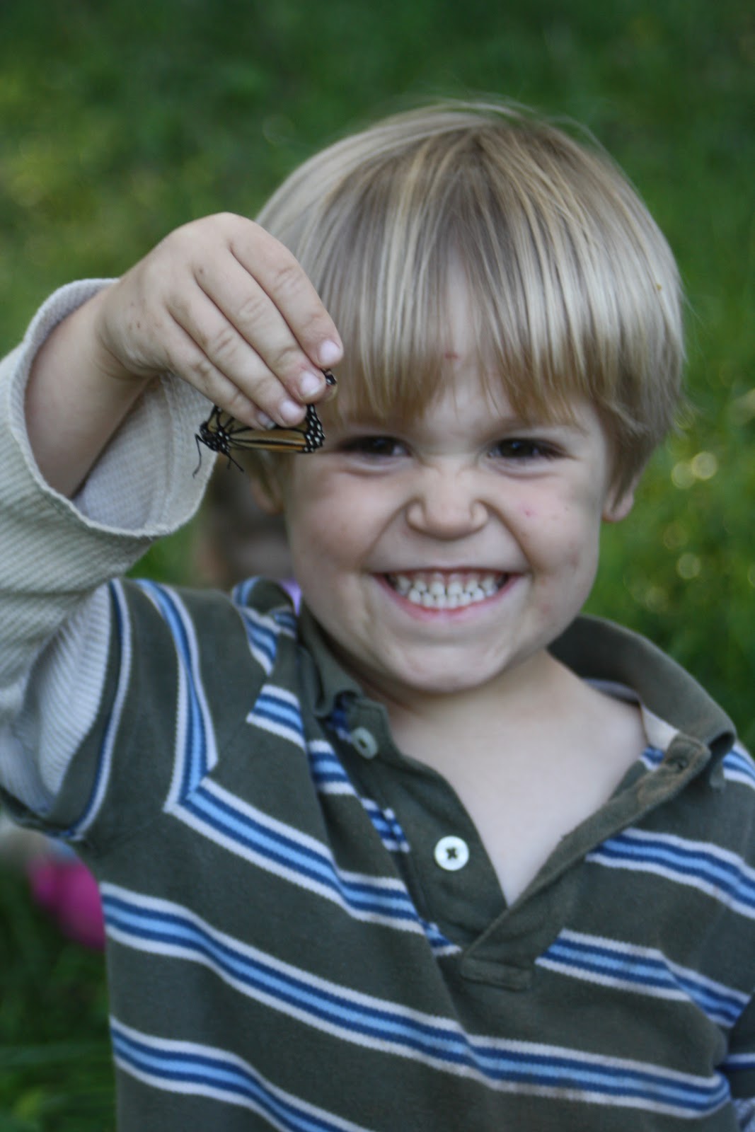 Is it just me or does he look a bit ornery here? Showing off our butterfly! |