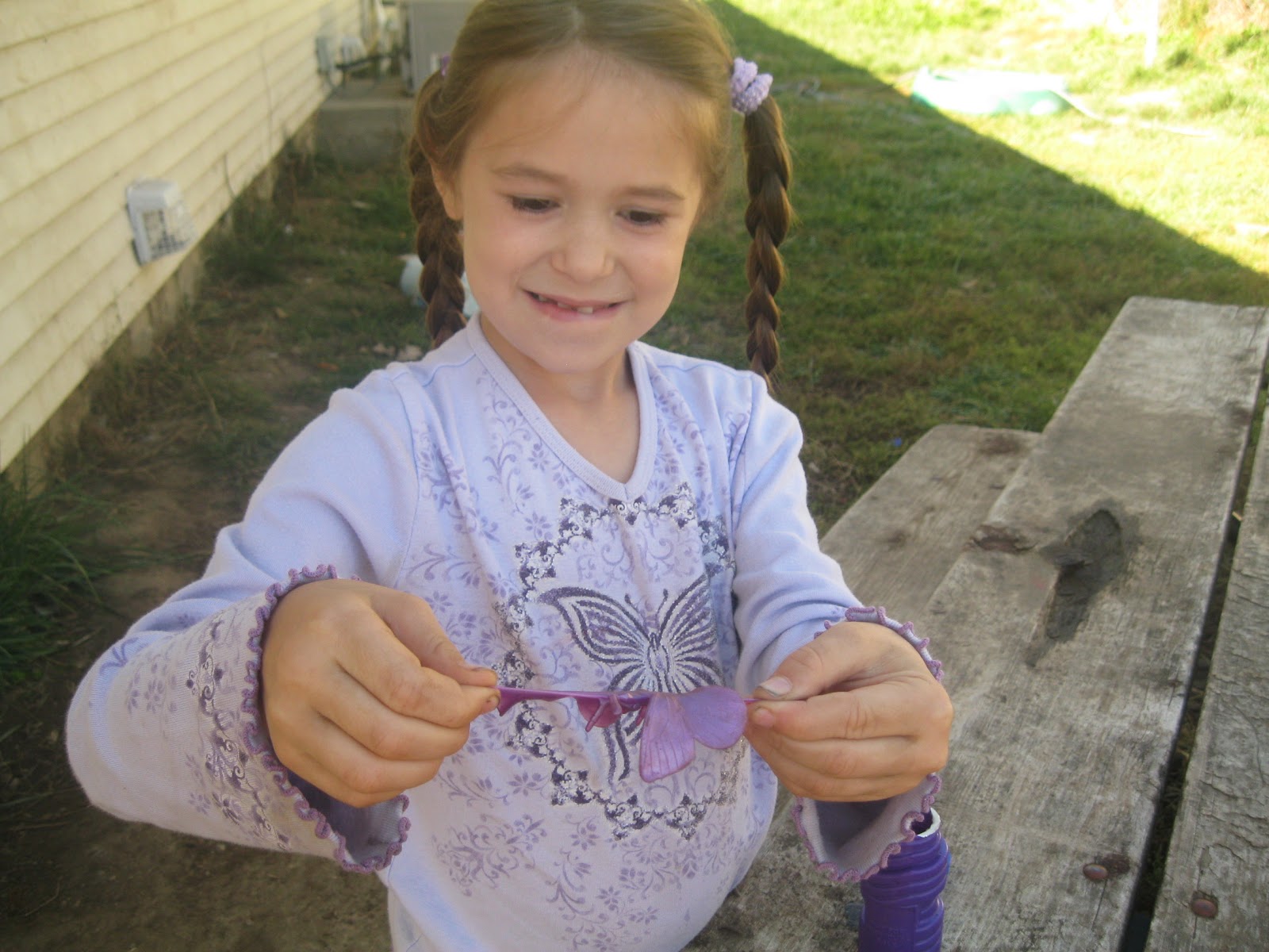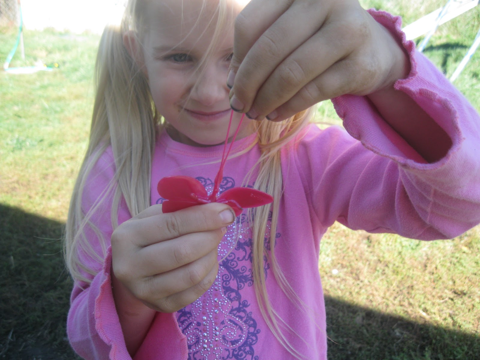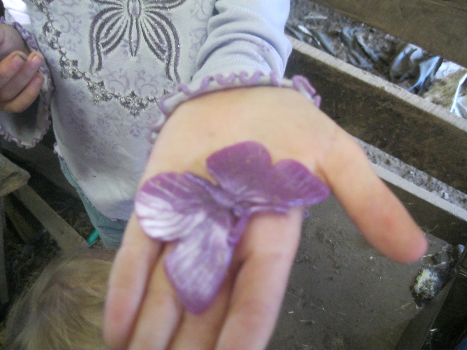 | Each of the girls got a butterfly to play with. |