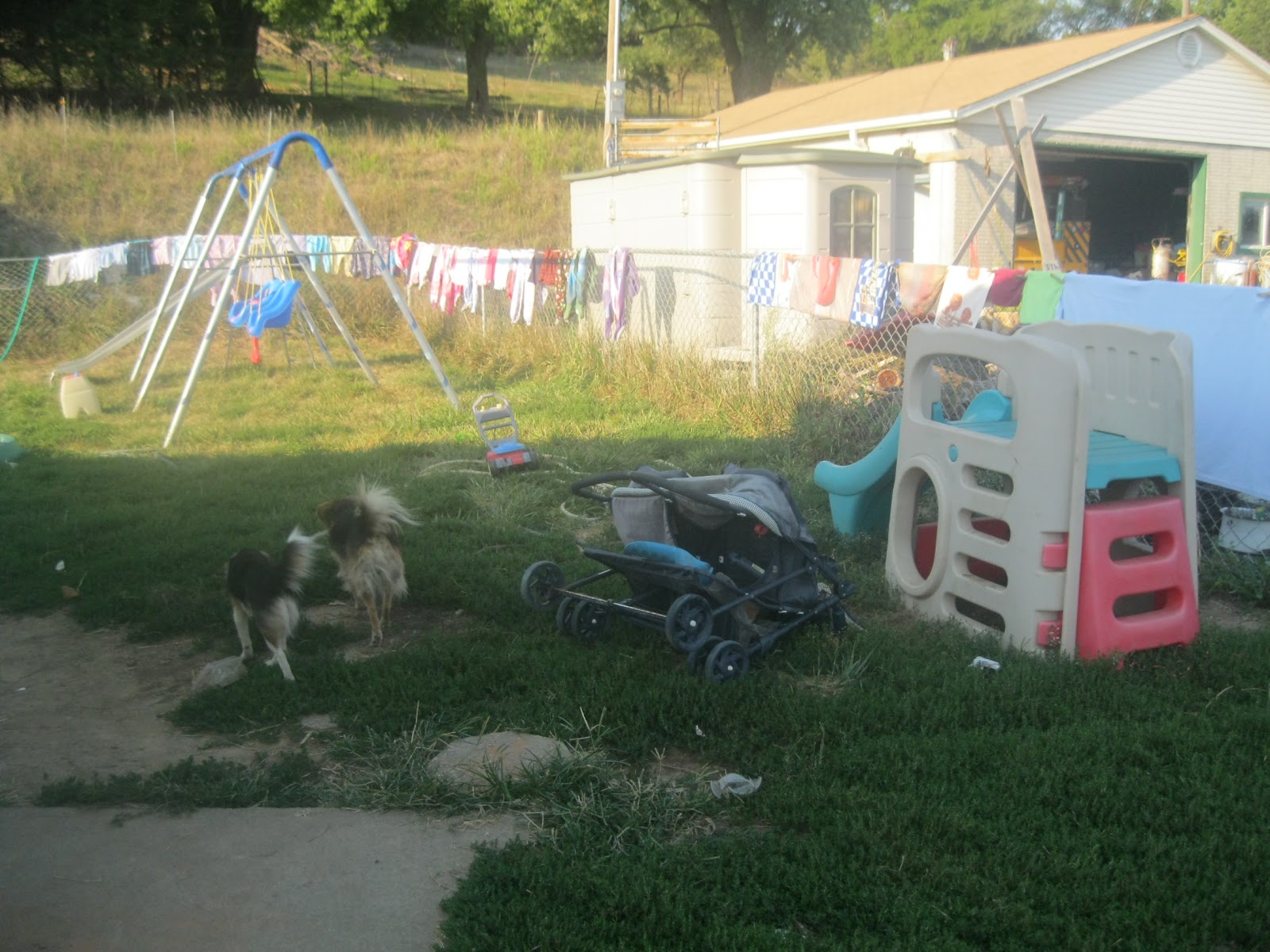 For the record you are only seeing a small portion of our fence. We have a large fenced in yard and I will fill that fence two days a week(as well as my small clothesline) with laundry. I love to hang out my clothes. I love the smell of the air dried and the crispness. It also helps to get stains out of the cloth diapers if they are sunned.