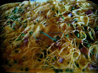This is such a casserole. I had some leftover chopped ham. One small package of spaghetti noodles(these were a corn based noodle). Some frozen peas and some cheddar cheese. So what did I do? Well it’s simple really!