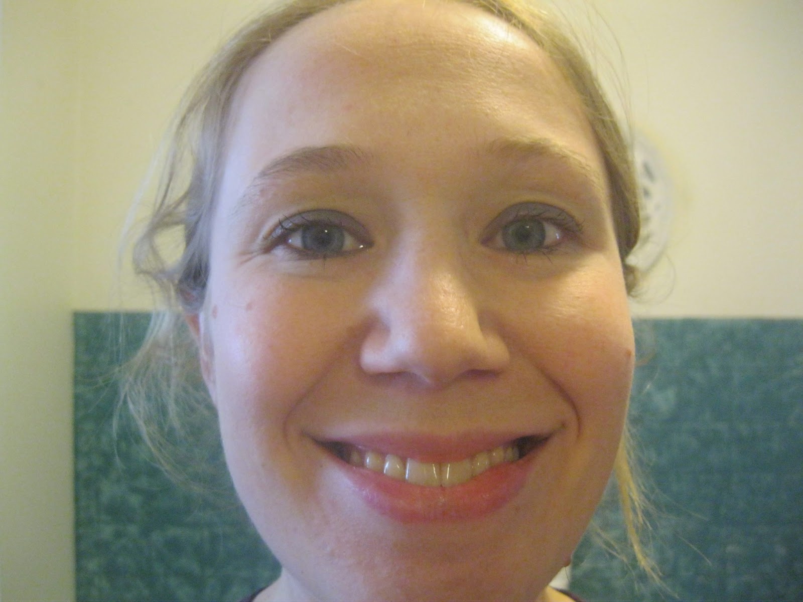 | With my glasses on, you can see the slight shimmer from the latte eyeshadow. |