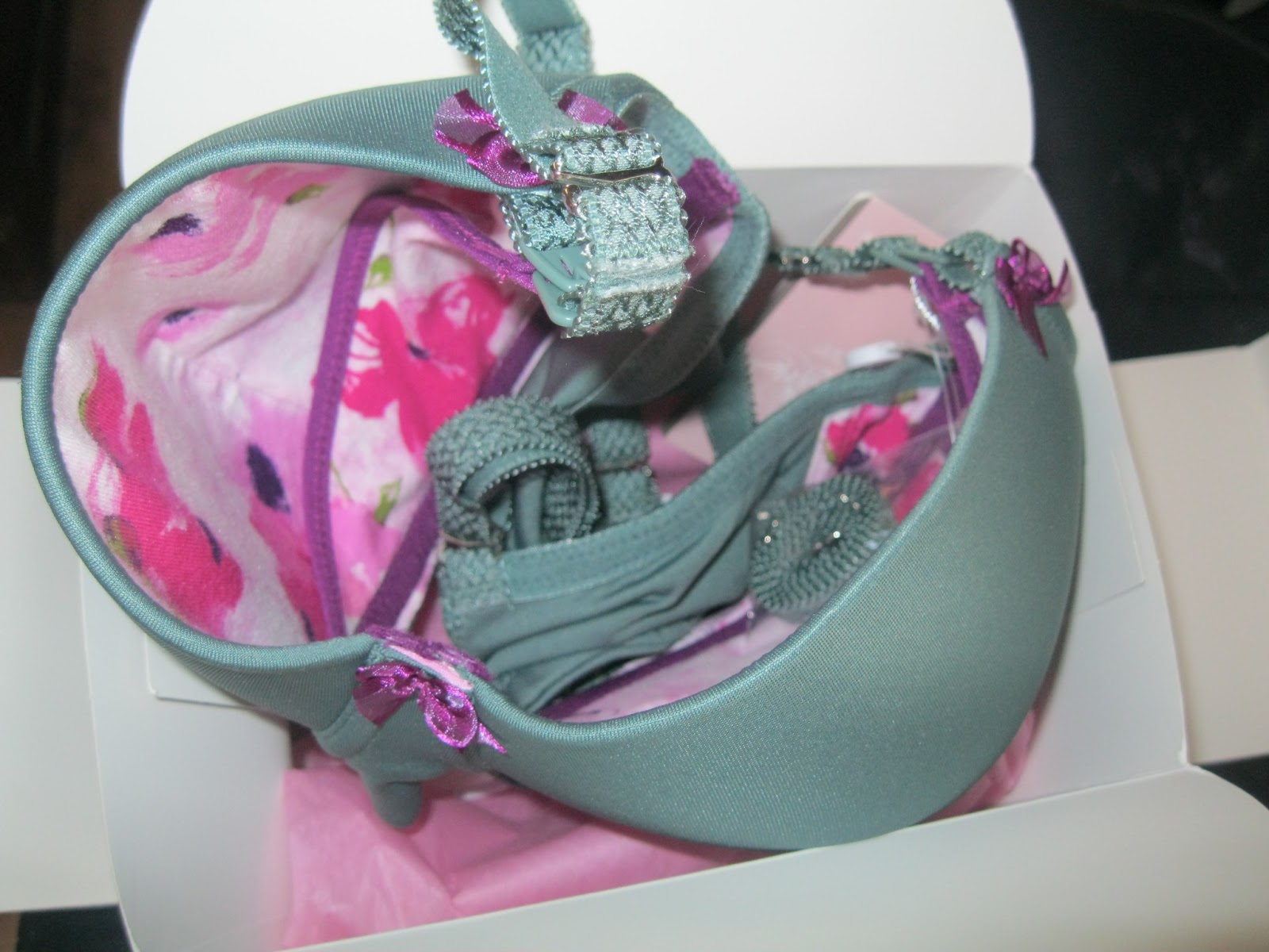 | My first glimpse of my new bra. Loving the colors. The mint toffee hides well under clothes. |