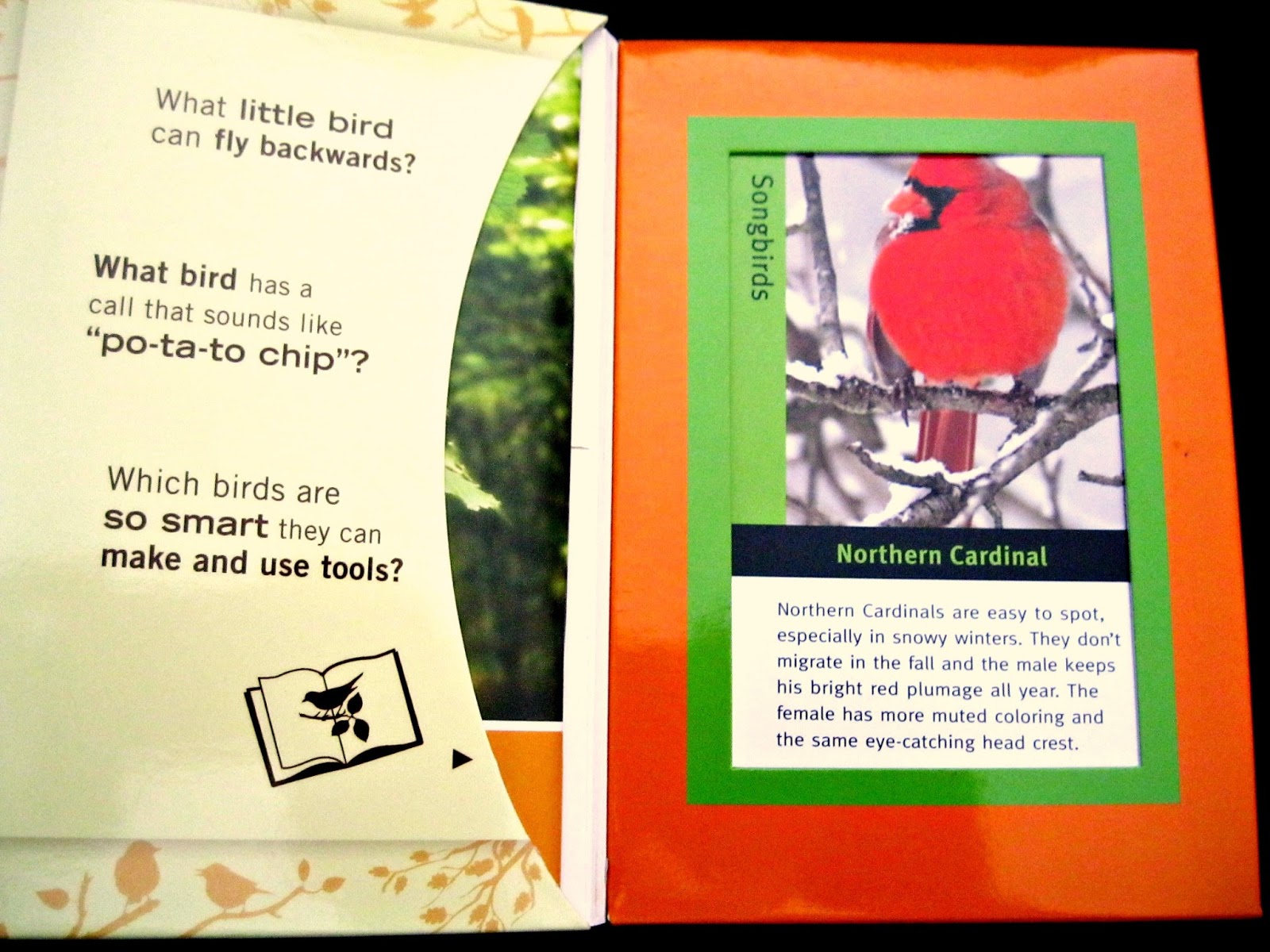 I’ve never been a huge bird type person and rarely remember what even the common birds are called. It’s just not my thing. That’s why this set was so wonderful for me. It gave me a chance to work with my kids on something they liked without having to rely solely on my memory(which really stinks). Makes for happy kids and a happy mommy! They can easily spend hours poring over the books and cards and looking out our large living room window. The only problem is keeping feed in the bird feeders. We even recently got a hummingbird feeder so we could see what hummingbirds we can attract in our area!